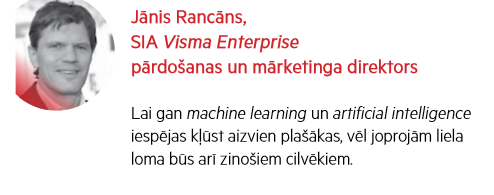 Arvien vairāk daži biznesa procesi virzās uz to, ka biznesa analītikas secinājumus lēmumos pārvērtīs nevis dzīvi cilvēki kādā valdes vai attiecīgas vadības grupas sēdē, bet kaut kas līdzīgs mākslīgajam intelektam jeb mašīna, kas prot mācīties (machine learning) un izdarīt secinājumus.